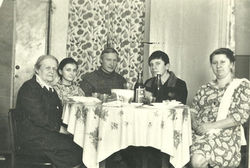 Вера (1936г.р.)- стоматолог, у нее два сына, один военнослужащий, к сожалению, погиб. У него было двое детей — сын и дочь. Дочери тоже нет уже в живых, а сын (внук Веры) живет в Иркутске, женат. Недавно у него родился сын, т.ч. Вера уже прабабушка. Муж Веры, Соловьев Николай, был военнослужащим, они много колесили по стране, а после выхода в отставку обосновались в подмосковном Дмитрове. Муж Веры умер, в настоящее время она живет вместе с т. Мирой (Эльмирой Эдуардовной) в Дмитрове. Вера на пенсии, но ведет активный образ жизни — ухаживает за т. Мирой, работает на садовом участке.